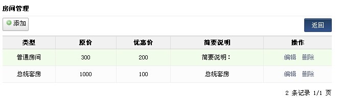 添加酒店有哪些房型,如单人房,双人房,套房等。在下图‘操作’中找到‘房间类型’点击进入房间类型管理。